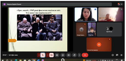 Викладач, Верба Марина Олександрівна, провела відкрите заняття з теми «Риси Ялтинсько-Потсдамської системи міжнародних відносин. Початок «Холодної війни.»» з навчальної дисципліни ”Всесвітня історія” для здобувачів освіти групи А- 11 освітньо-професійної програми  ”Агрономія”.